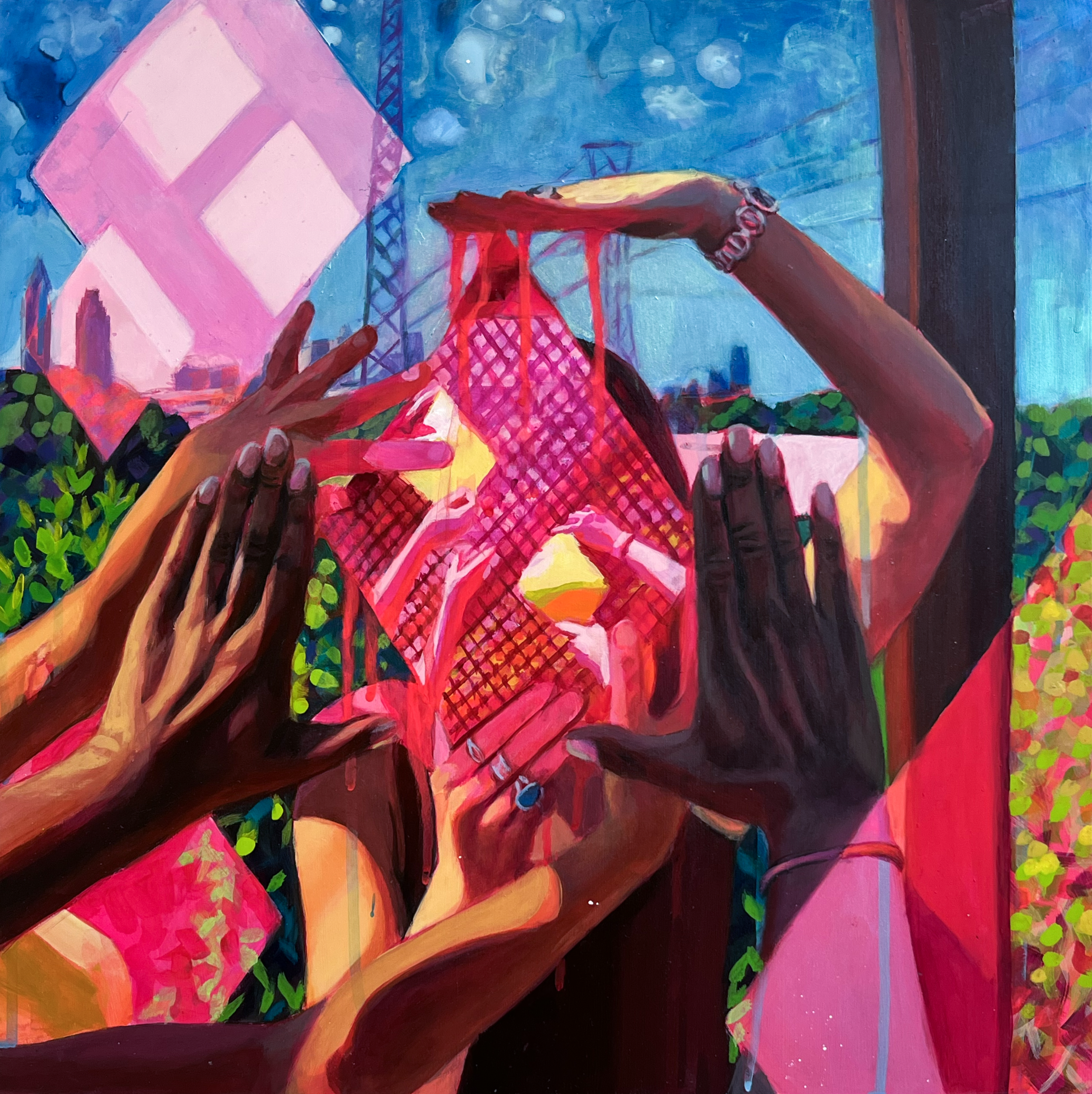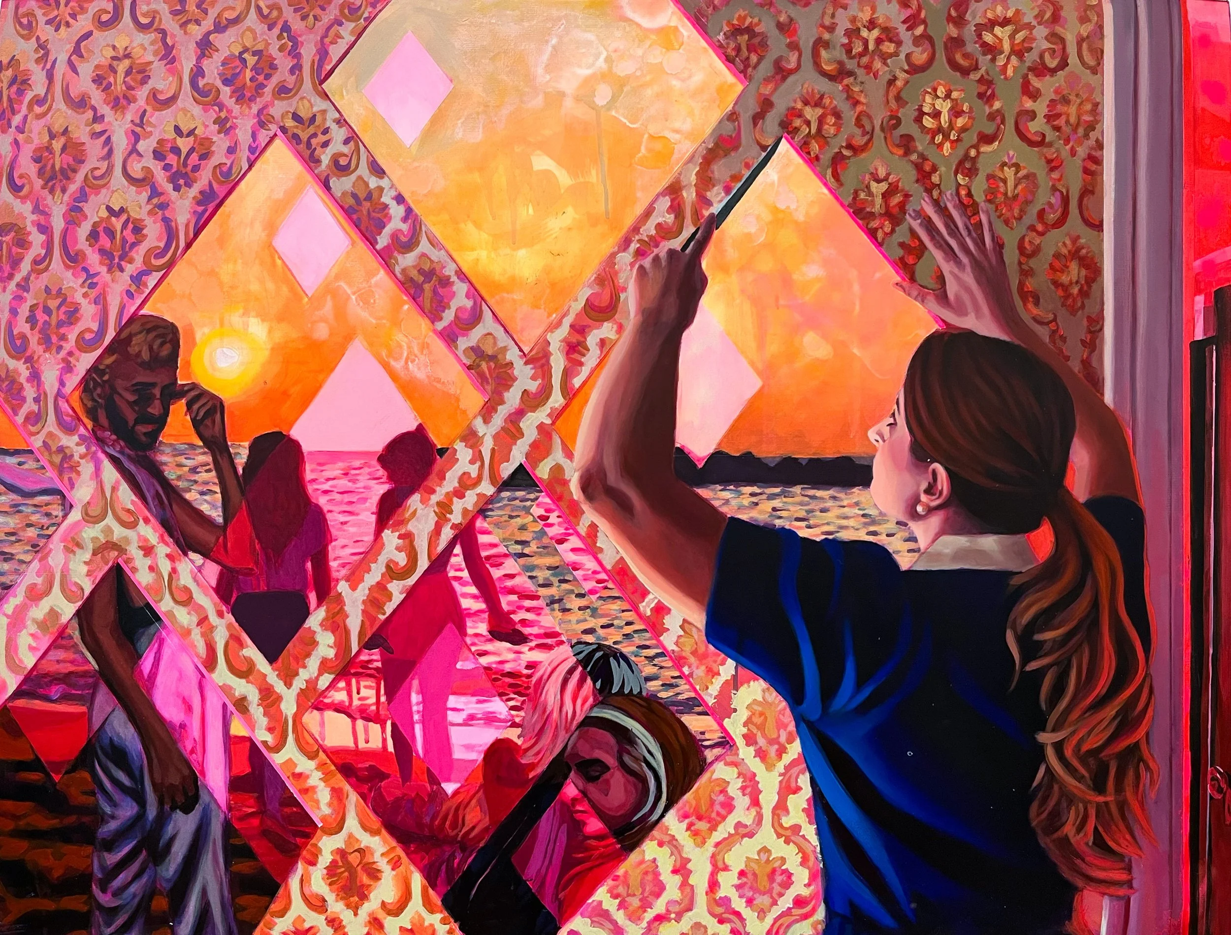 Danielle Mužina is an artist and educator from Cleveland, Ohio. As an artist, she makes paintings that explore place, identity and crisis, inspired by her experiences as a member of a family that immigrated from Croatia. She received her B.F.A at Ohio Wesleyan University, her M.A. at Eastern Illinois University, and her M.F.A. at Miami University. Mužina also studied at the Jerusalem Studio School in Civita Castellana, Italy, and completed residencies at Chautauqua School of Art, the Vermont Studio Center, and The Sam and Adele Golden Foundation. Her paintings have been shown at numerous galleries nationally including juried exhibitions at First Street Gallery, Blue Mountain Gallery, Bowery Gallery, The Untitled Space, and Prince Street Gallery in New York, NY, Buckham Gallery in Flint, MI, the Gertrude Herbert Institute of Art in Augusta, GA, and Verum Ultimum Gallery in Portland, OR. Her current Pink Apocalypse series was recognized with an Artist Enrichment Grant from the Kentucky Foundation for Women and national scholarly organization SECAC’s Outstanding Artistic Achievement Award in 2021. Her artwork is included in John Seed’s 2023 book More Disruption: Representational Art in Flux, and she is represented by Bruno David Gallery in St. Louis, MO.