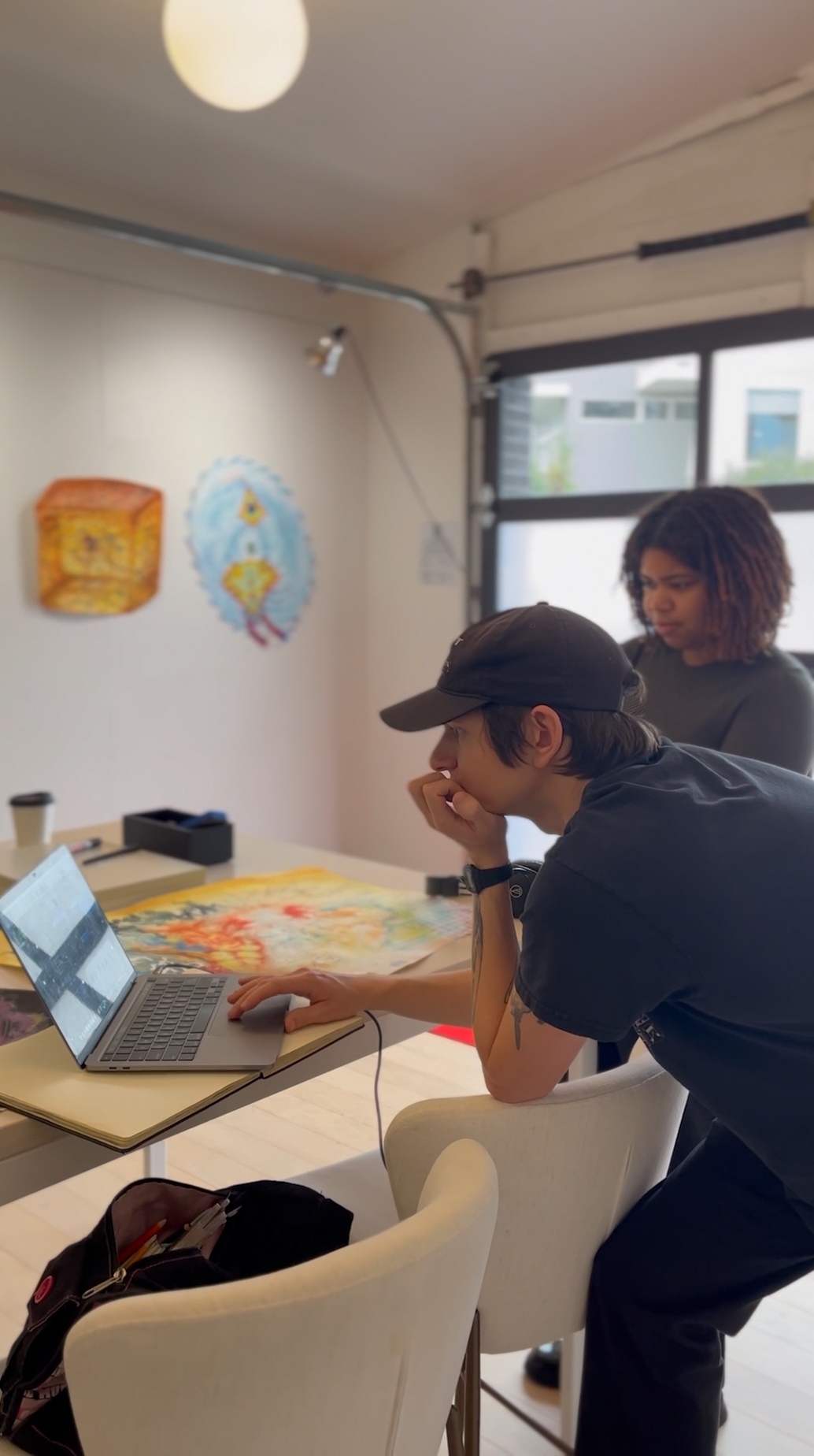 Well, it was new for me. Creating work in a different space coming out of art school. So it felt much more casual, much more lighthearted. And it was also nice to have somebody to bounce ideas off of while I was up there. I felt like I had a lot of time to myself and to think. I felt like there was coziness. There was privacy. So. Yeah, I really enjoyed it.